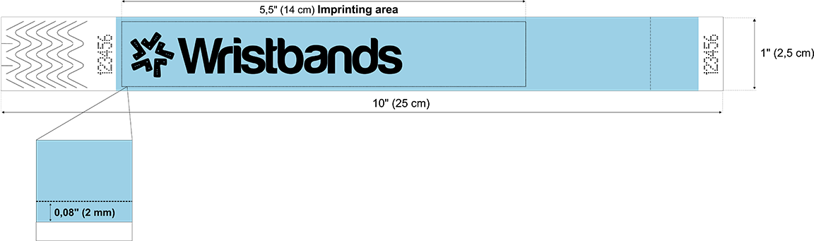 Identifikační náramky Tyvek lze potisknout vaším designem, logem, textem. Nejběžnějším je potisk černou barvou, ale je možné tisknout taky stříbrnou, nebo zlatou barvou.