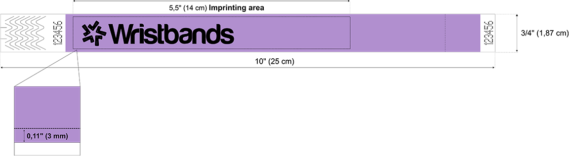 Identifikační náramky Tyvek jsou vyrobeny z pevného, voděodolného a lehkého materiálu Tyvek. Identifikační náramky se komfortně přizpůsobí jakékoliv velikosti ruky, na kterou jsou připevněny pomocí bezpečnostního lepícího proužku. Identifikační náramky Tyvek jsou k dispozici v škále 17 barev, dlouhé 25cm (10") a široké 2,5 cm (1") nebo 1,875 cm (3/4").